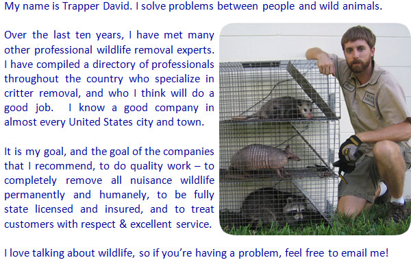 © 2003-2017     Website content & photos by Trapper David     Email questions: david@wildlife-removal.com